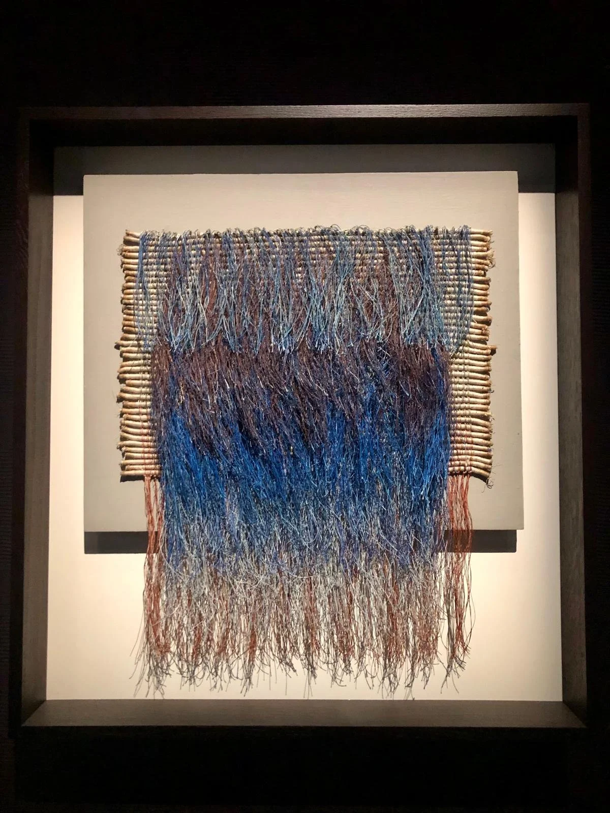 Les mathématiques occupent une place centrale dans le travail d’Olga de Amaral, particulièrement visible dans sa série Brumas. Ces créations diaphanes, tissées en trois dimensions, semblent suspendues dans l’air. Les motifs géométriques qui apparaissent sur les fils peints rappellent les grilles et les structures ordonnées, un clin d’œil à son goût pour l’architecture et la composition. Ces œuvres offrent une expérience contemplative, jouant sur les interactions subtiles entre la lumière, la texture et l’espace.
